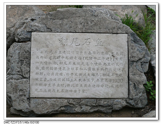 翻尾石魚是圓明園的遺物,被八國聯軍掠奪,1930年重返中國,置於未名湖畔。