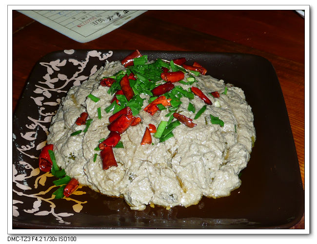麻豆腐-發酵後的豆汁用旺火燒,使之水份揮發掉,存下的渣兒就是麻豆腐,微微有些發綠。