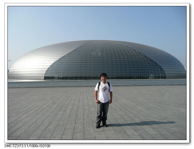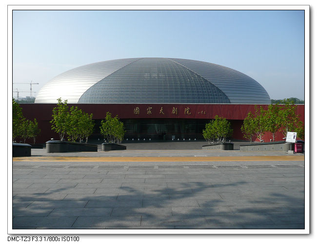 北京國家大劇院,透明玻璃和鈦金屬板陰陽相間的半橢圓球狀劇院,被暱稱作「水煮蛋」。
