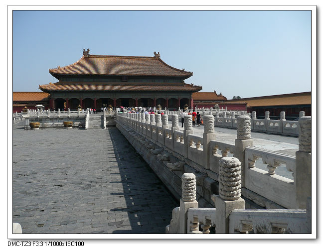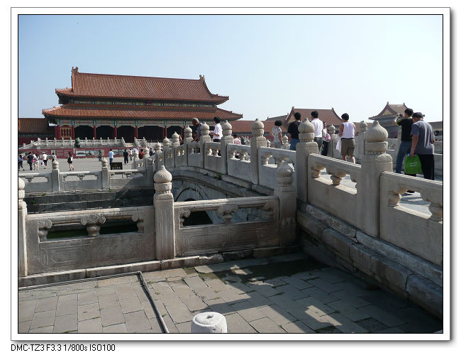 在進入午門之後,可以看到非常精巧的五座漢白玉拱橋前往前方的太和門。
