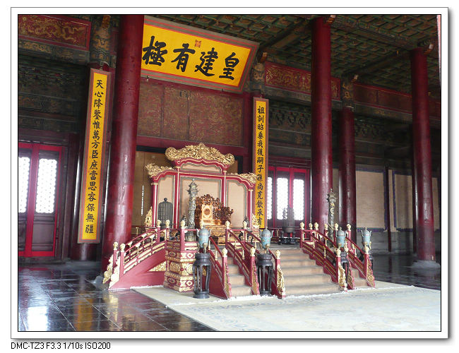 殿內寶座居中,寶座上方懸掛有乾隆帝御筆“皇建有極”匾,意即任君建立天下最高準則。