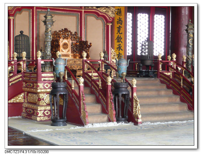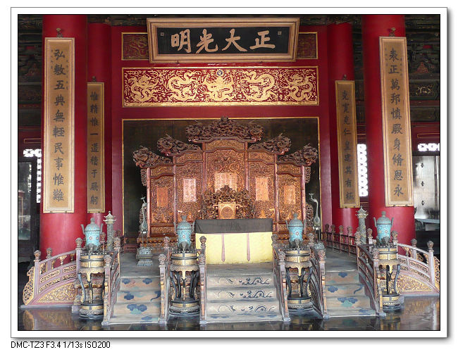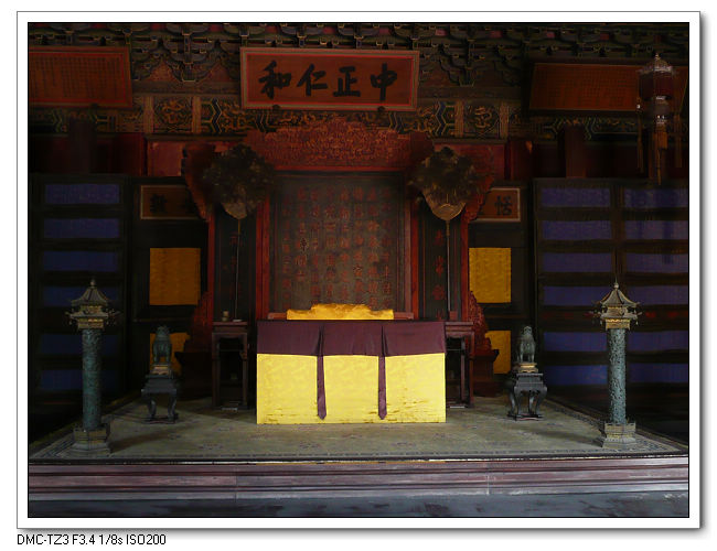 皇帝的寶座設在明間正中,上懸雍正御筆「中正仁和」匾。