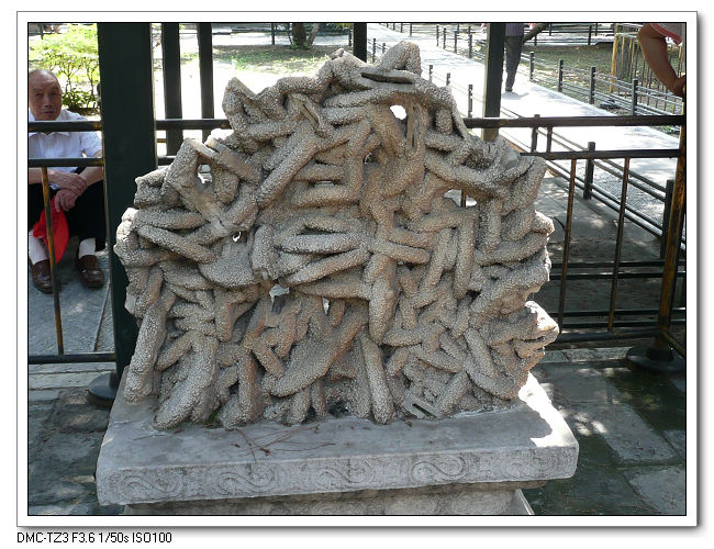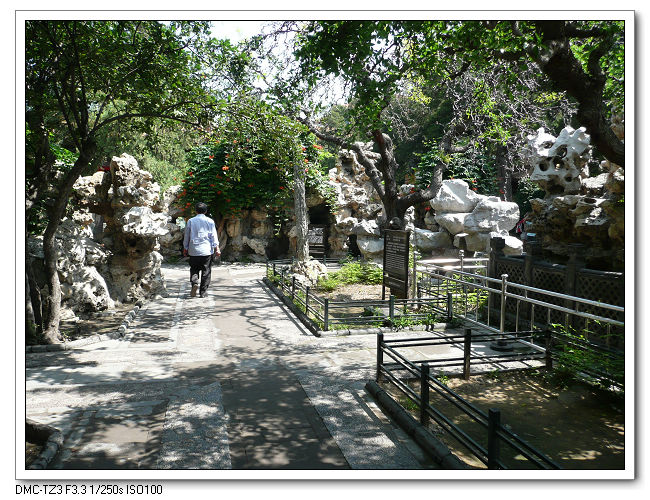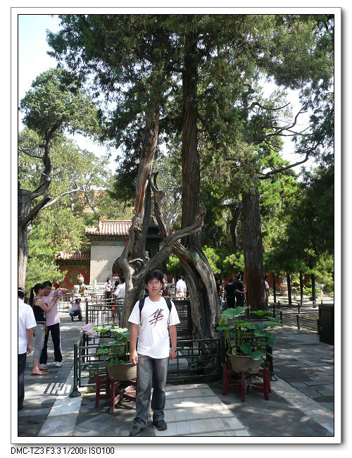 御花園的入口有兩棵糾結在一起的夫妻樹,導遊說夫妻或情侶不要在這棵樹旁照相。