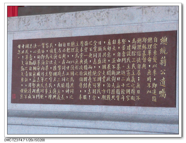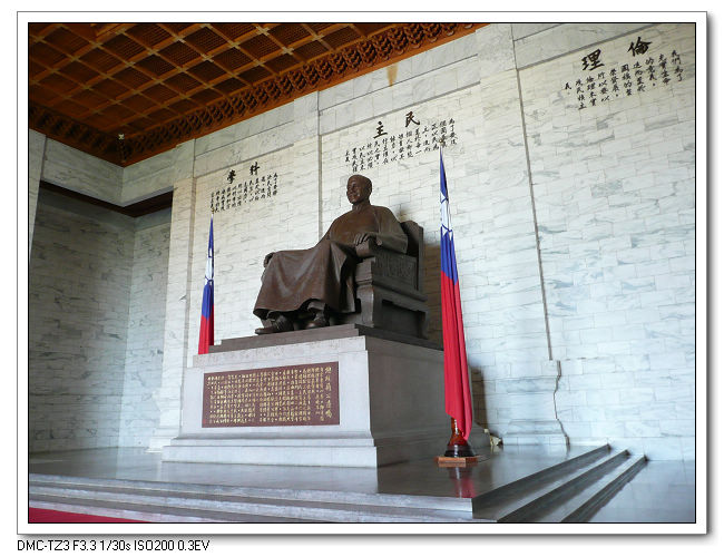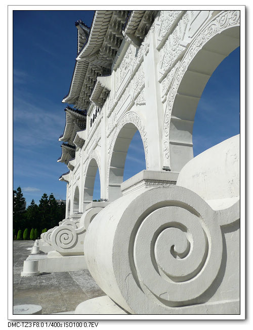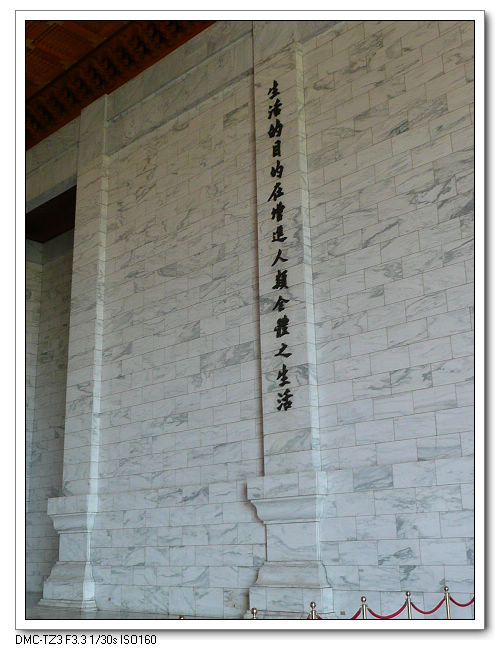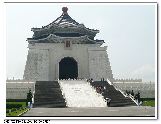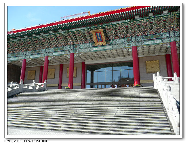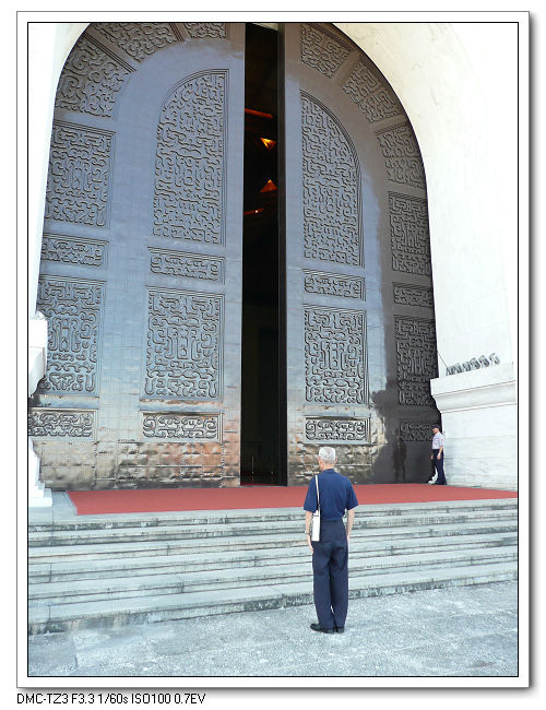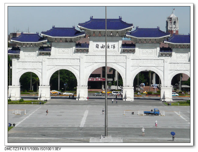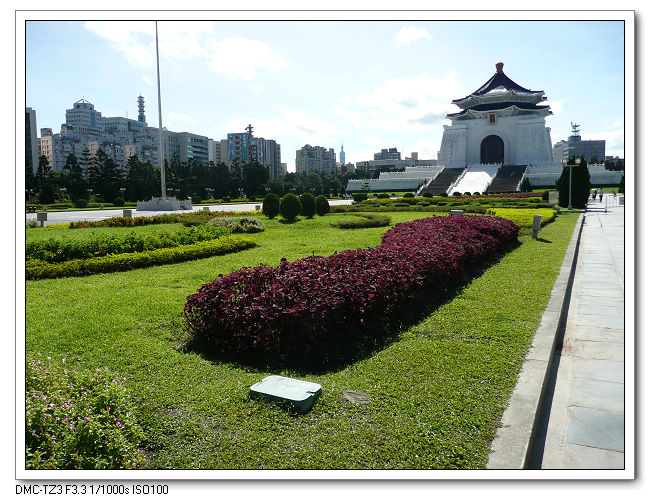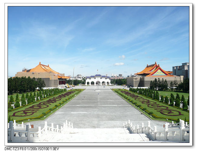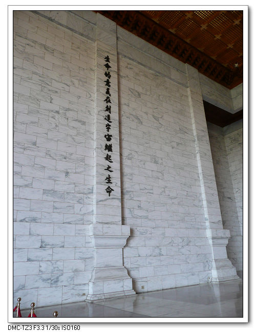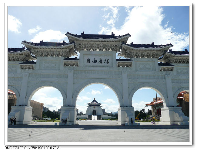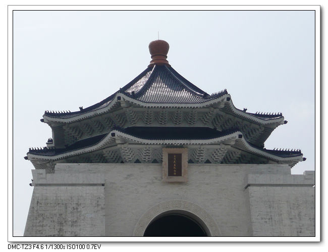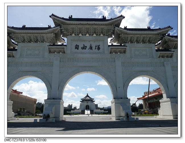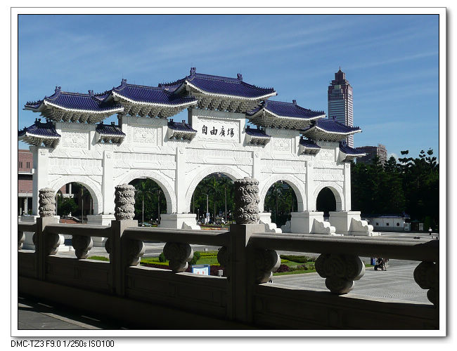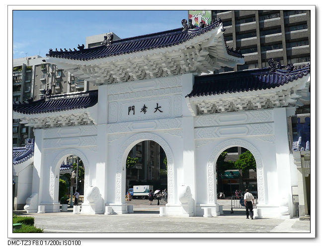 紀念堂牌樓,高30公尺,是台北市區內最大的牌樓,牌匾題字原為「大中至正」。