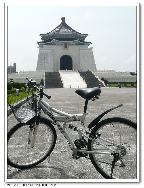 廣場內不能騎腳踏車,只能牽著車到處逛。