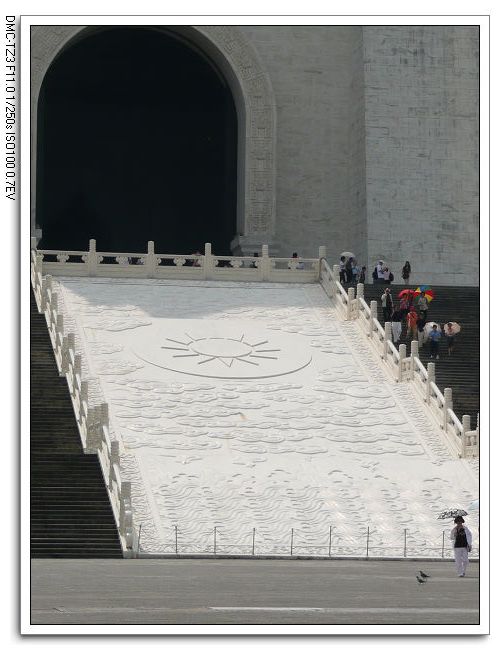 台階中間為中華民國國徽圖案的「御路」,在中國傳統建築上,只用於宮殿或廟堂。
