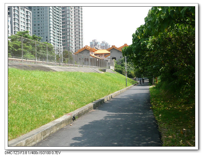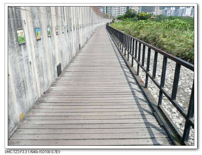 這木棧道看起來很好,但騎過每一根木條就會翹起來,發出摳摟摳摟很吵的聲音。