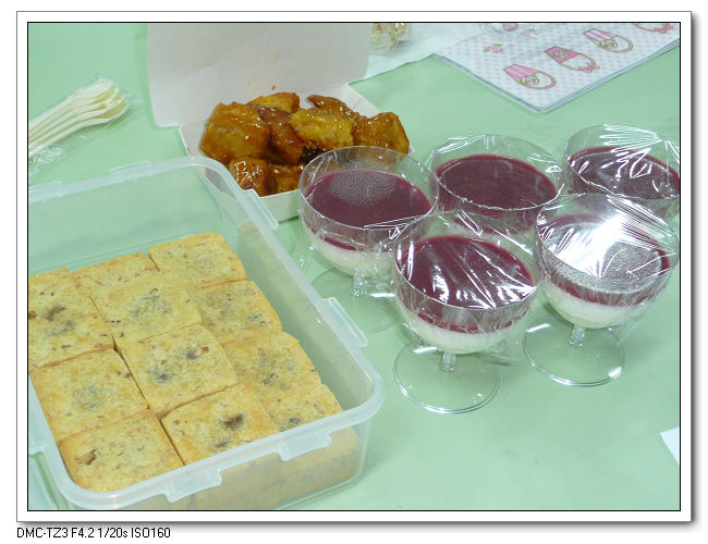 心蓓準備了好吃覆盆子奶酪及吃不膩鳳梨酥,台生帶來的傳統小吃拔絲地瓜。