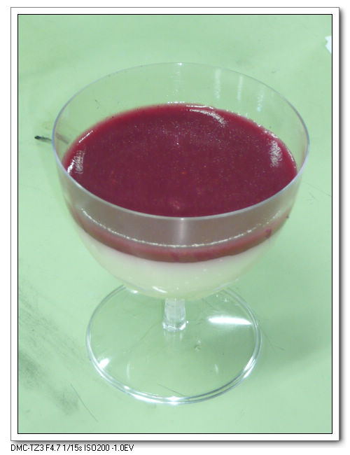 心蓓的覆盆子奶酪,用紅酒杯造型容器跟葡萄酒課很搭。