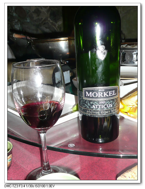 南非Bellevue酒莊2003 Atticus,49% Cabernet Sauvignon, 34% Pinotage, 17% Petit Verdot。入口柔順,帶有花果香。