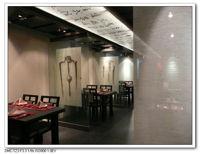 室內室外連成一線由紅、白、黑三色構成基調以宣紙、書法等中國元素穿插點綴。
