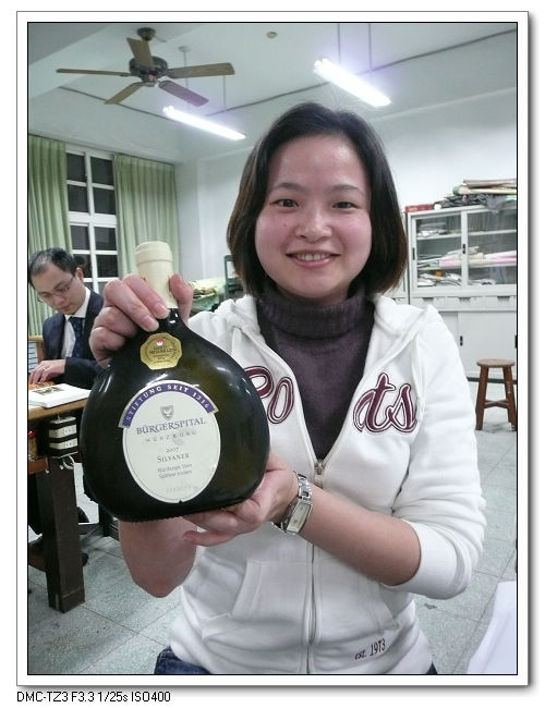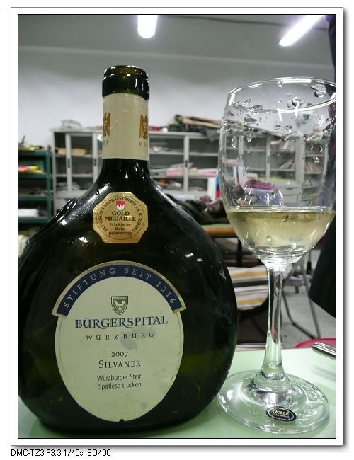 芝薇從德國帶回台灣難見到的法蘭根羊胃袋瓶的晚摘乾白酒。