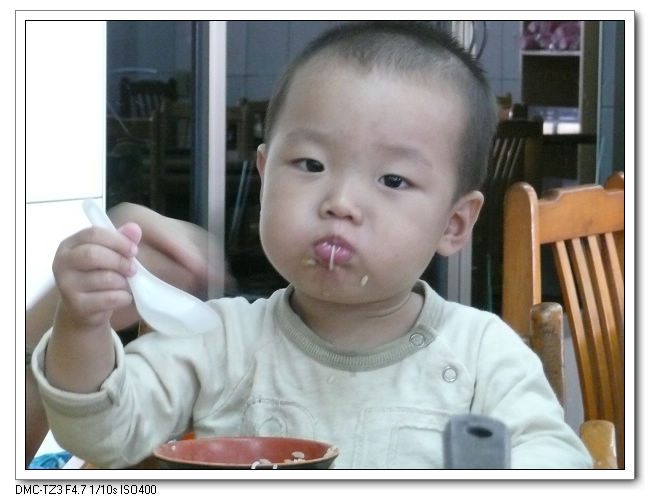 小朋友吃麵線吃的津津有味。