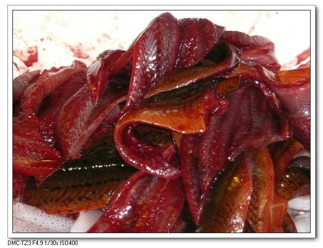 血淋淋的鱔魚,雖然不雅觀,但感覺炒出來一定很新鮮美味。