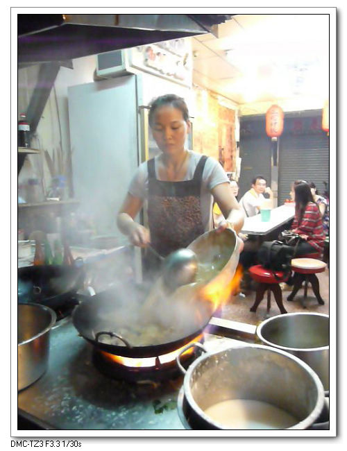 老闆娘平時有在練喔,這麼一大鍋只用單手就端的起來。