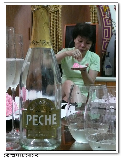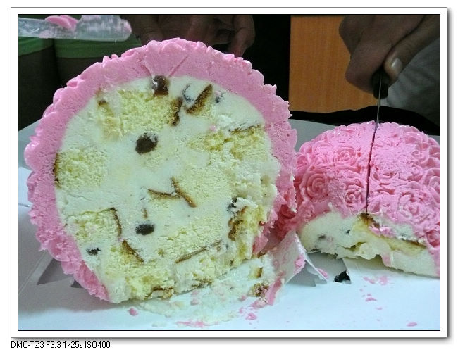 這蛋糕是實心冰淇淋,超難切開滴,換益生來幫忙切開。