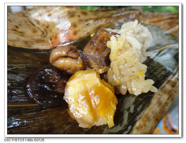 這肉棕有點令人失望,吃了四分之三後,才看到餡料就這四樣而已~